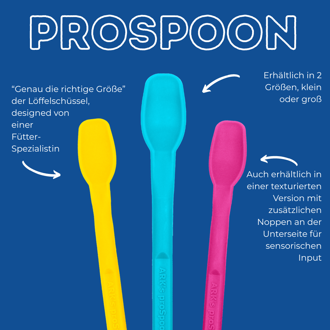 Der glatte proSpoon™ von ARK die Nahrungsaufnahme bei Säuglingen, Kleinkindern, Kindern und Erwachsenen mit Unterstützungsbedarf entwickelt. Die Löffelschale ist so geformt, dass sie eine angemessene Menge fasst – groß genug für eine effektive Nahrungsaufnahme, aber klein genug, um Überladung zu vermeiden. Ideal für pürierte Lebensmittel wie Joghurt, Apfelmus oder Babynahrung der Stufe 1.