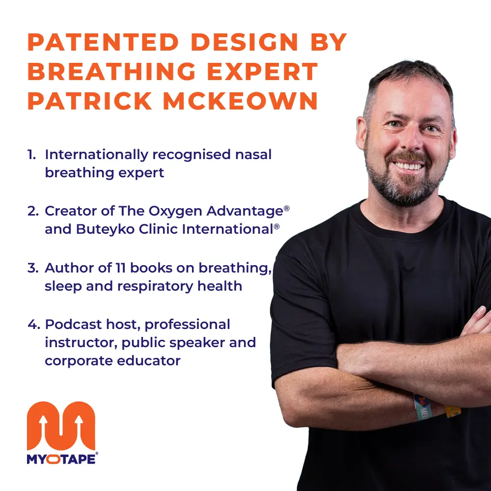 MyoTape is designed to support nasal breathing during sleep, physical activity, or throughout the day – without taping the mouth fully shut. The tape is applied around the lips and gently helps keep the mouth closed. Ideal for snoring, mouth breathing, CPAP therapy, or sleep-related fatigue.