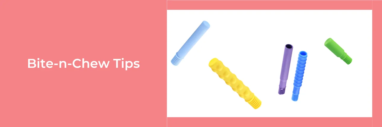 The chewing attachments for the ARK's Z-Vibe are available in different lengths, textured or smooth and hollow or solid and are ideal for preparing your patients for solid food or for training rotatory chewing, for example. At home, parents can put porridge or applesauce in the hollow chewing attachment to make oral exploration even more interesting for their child. Of course, bite rings can also be used, but sometimes an additional stimulus with vibration is even more interesting for patients. HERE you can find information on all attachments!