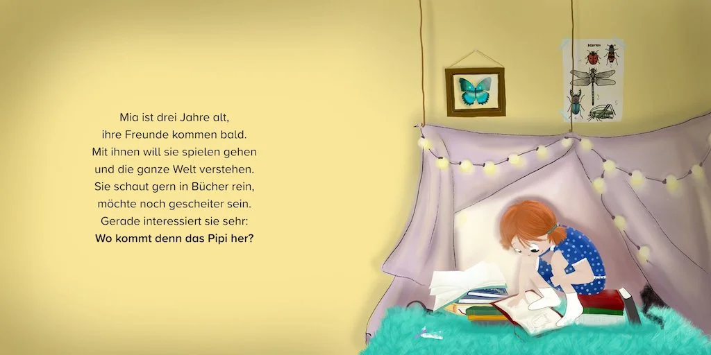 Die kleine Mia ist neugierig und stellt die Frage: Woher kommt eigentlich das Pipi? Mit einem Taschenspiegel schaut sie nach – doch was sie sieht, wirft neue Fragen auf. Zum Glück hilft ihre Mama, zeichnet eine Vulva und erklärt, welcher Ausgang für das Pipi da ist. Aber wie finden Getränke ihren Weg bis in die Blase? Dieses liebevoll illustrierte Kindersachbuch klärt auf, fördert den tabufreien Umgang mit dem Körper und vermittelt Wissen schon ab 2 Jahren.