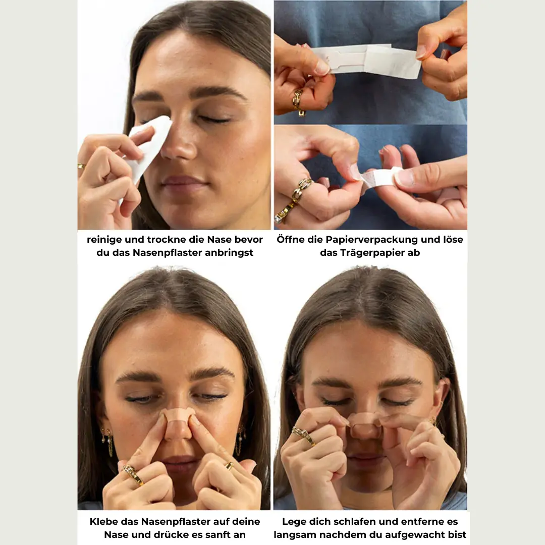 - Pflaster quer über die Nasenflügel kleben, sanft andrücken