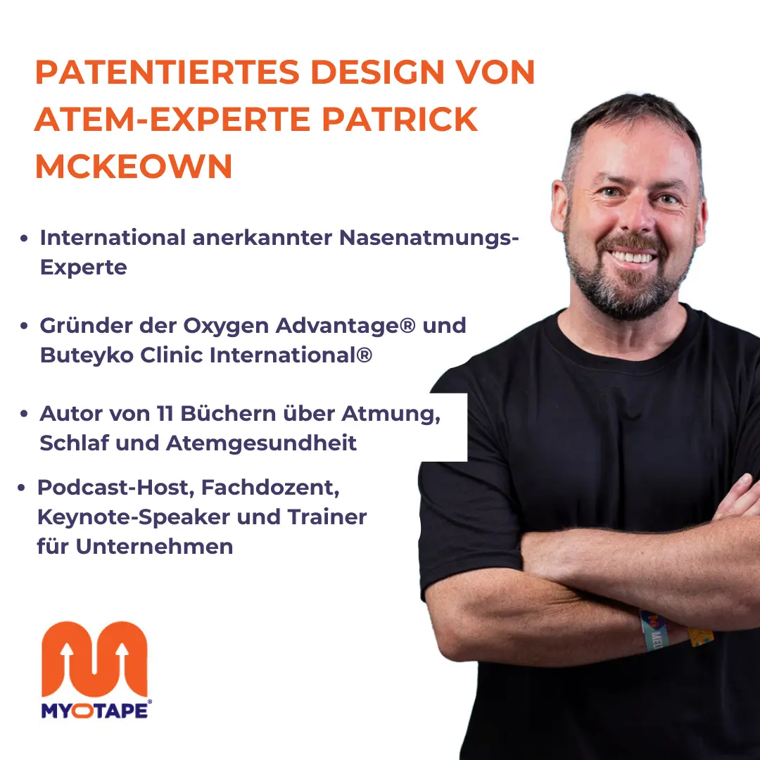 MyoTape unterstützt die Nasenatmung im Schlaf, bei körperlicher Aktivität oder im Alltag – ohne den Mund vollständig zu verschließen. Das Tape wird rund um die Lippen geklebt und hilft dabei, den Mund sanft geschlossen zu halten. Ideal bei Schnarchen, Mundatmung, CPAP-Therapie oder schlafbedingter Erschöpfung.