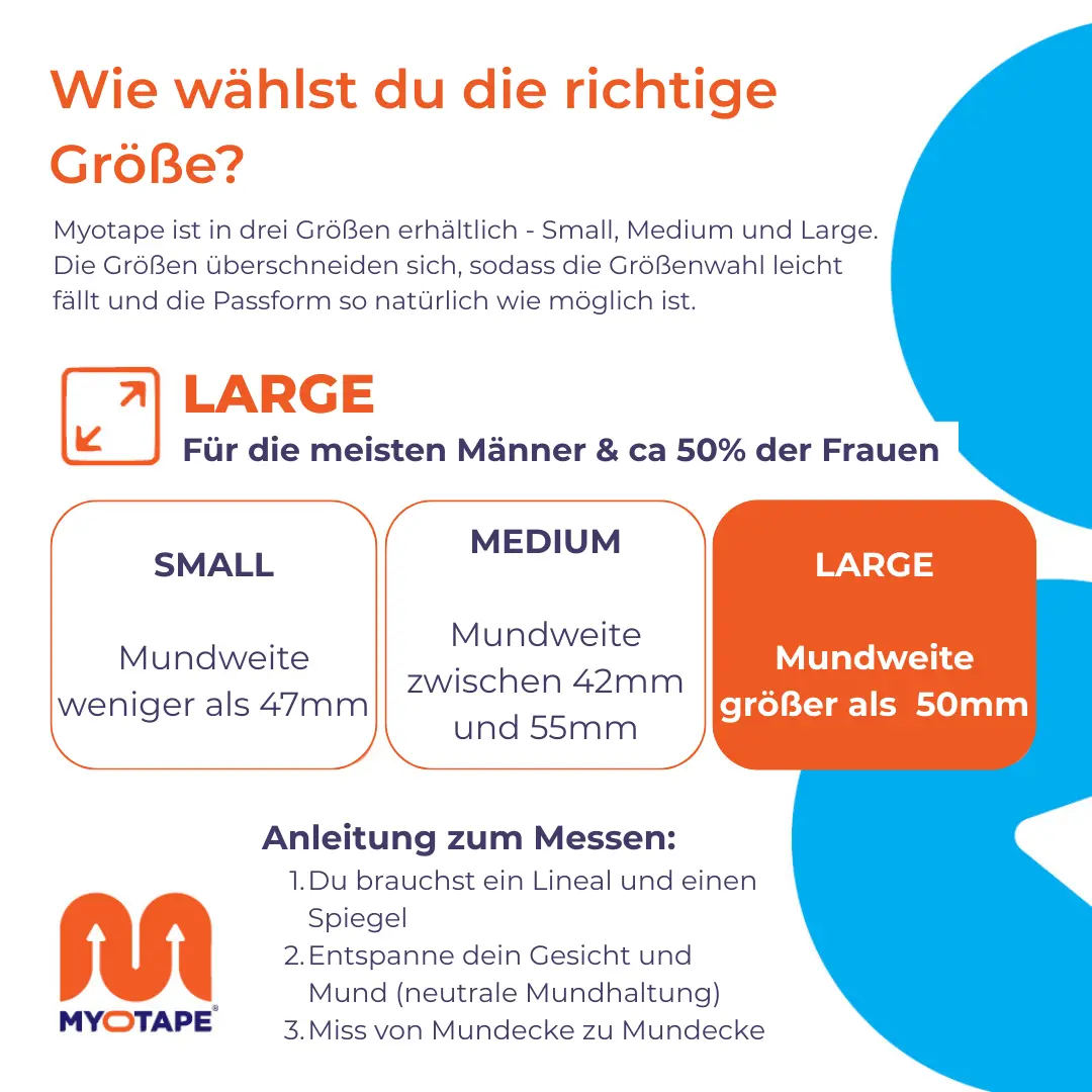 Wenn du zwischen zwei Größen liegst oder einen eher breiten Mund hast, wähle lieber die größere Variante – sie deckt den Bereich besser ab und sorgt für mehr Komfort.